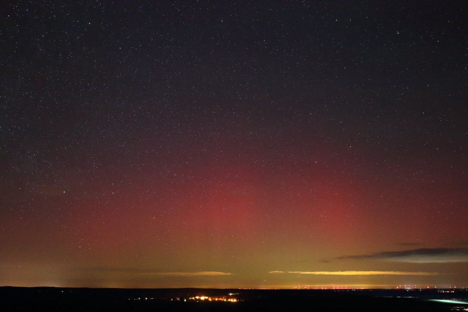 Wieder einmal schwierige Beobachtungsbedingungen durch starke Bewölkung. Deshalb bin ich erst spät rausgefahren, da die Wettervorhersage Besserung versprach. Fast ununterbrochen war der PL-Bereich durch Wolken verdeckt. Während des abklingenden ersten Substorms gab es eine kleine Lücke und durch den Kontrast zu den dunklen Wolken war das rote PL schwach visuell wahrnehmbar. Als die Bewölkung nach lies war dann auch der zweite Substorm fast durch. PL war nur noch fotografisch zu erfassen.