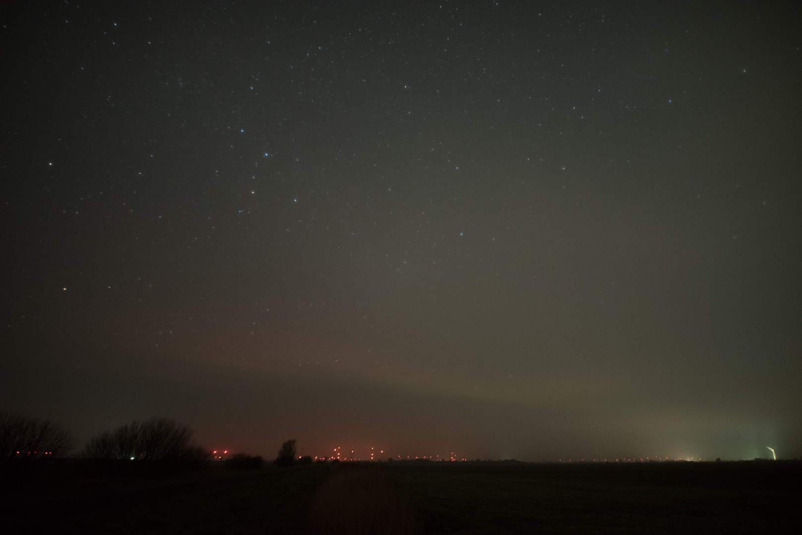 Mit schlechter werdenden Werten am DSCOVR und Nachweisen an den Amrum-Webcams bin ich dann doch noch rausgefahren. Gleich das erste Bild lieferte einen eindeutigen Nachweis. Die Kamera war hier meinen Augen absolut überlegen. Im Norden war aus meiner Sicht alles bedeckt. In den nächsten Minuten besserte sich die Sicht aber und um 22:50 UTC glaubte ich sogar eine rötliche Tönung knapp unter Cassiopeia wahrzunehmen. Beim Blick auf das Kamera-Display war das kreischende Pink nicht zu übersehen. Bis 23:30 UTC ließ die Aktivität deutlich nach zumal eine durchziehende Wolkenbank die Sicht beeinträchtigte. Bis zum Ende meiner Beobachtung ist aber immer noch ganz schwach fotografisches PL zu sehen.