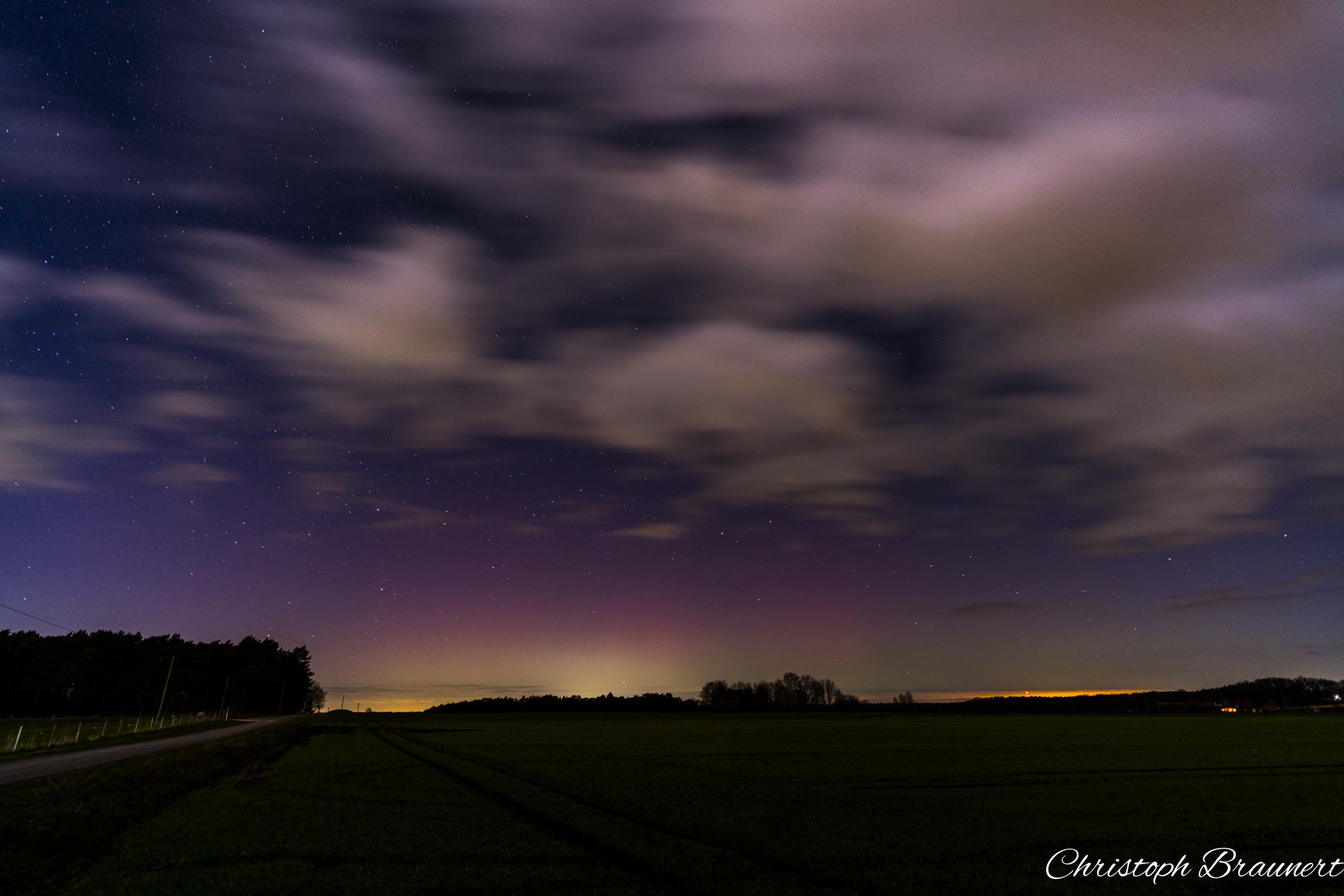 Von 21 Uhr 50 bis 23 Uhr 15 habe ich durchgehend Polarlicht erkennen können.