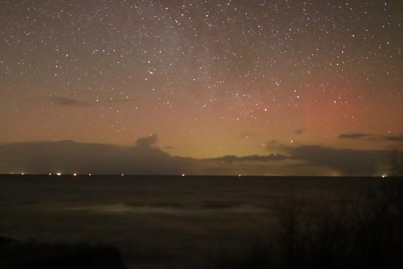 Interessant finde ich den "Standorteffekt" im Vergleich zu Jörg's Bilder (Nordermeldorf). Hier an der Osteeküste ist die nächste schwache Lichtquelle ca. 40km Luftline entfernt (Langeland/Dänemark). Jörg hat im Vergleich dazu mit deutlich mehr anthropogenem Licht Richtung Norden zu kämpfen.