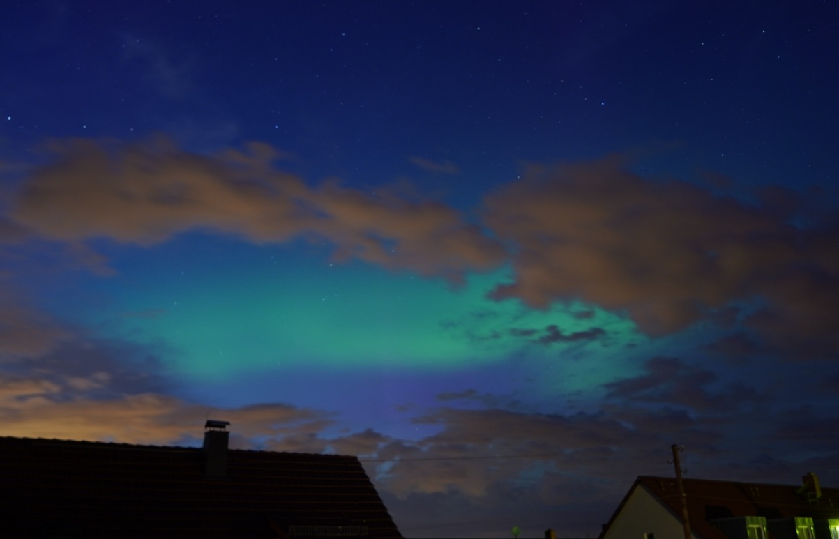 auch in Wolmirsleben waren deutlich visuell Polarlichter zu beobachten. Leider wurde es rasch bewölkt. Die Fotos habe ich gegen 21:45 Uhr gemacht.