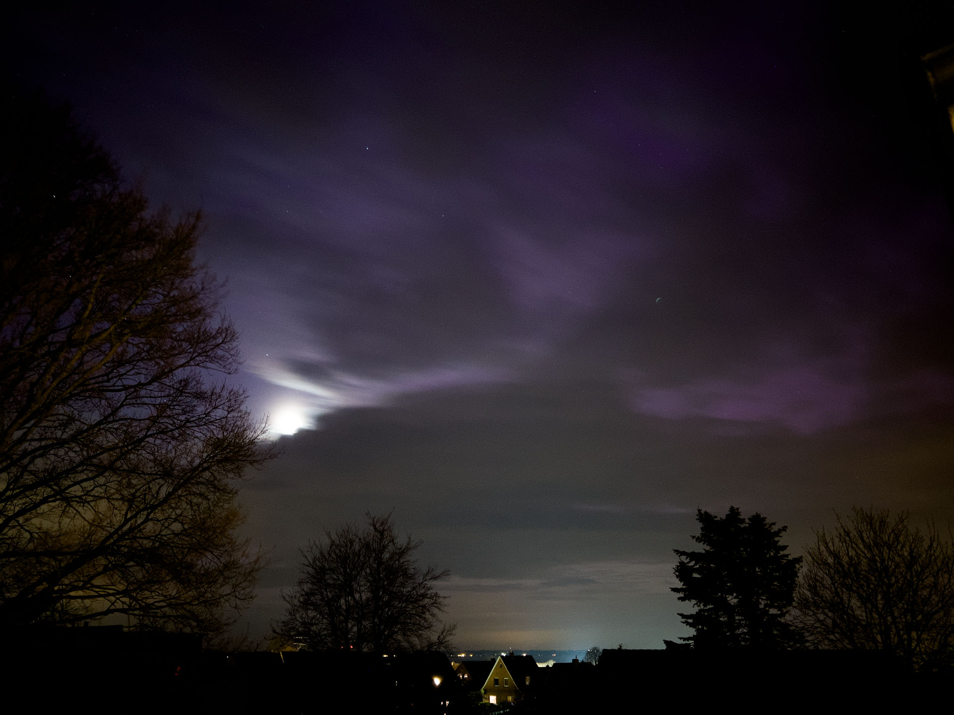 Ich habe vorhin Glück gehabt und von meinem Balkon in Hamburg aus etwas Polarlicht fotografieren können.