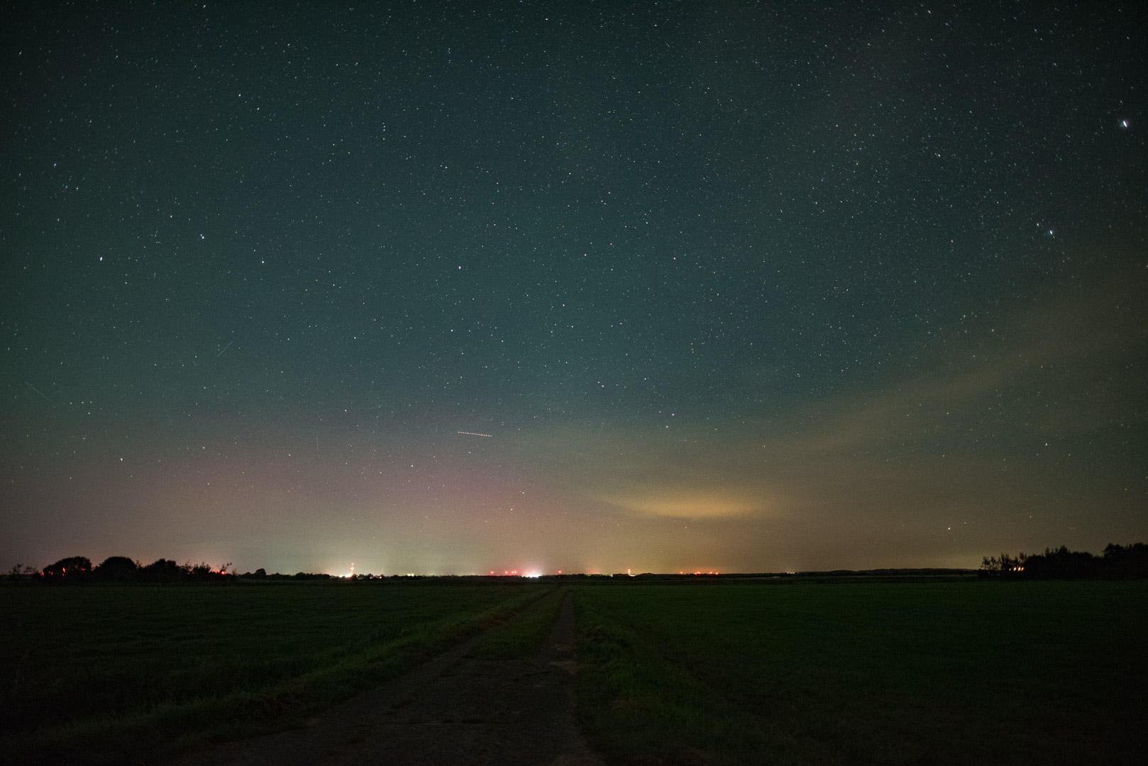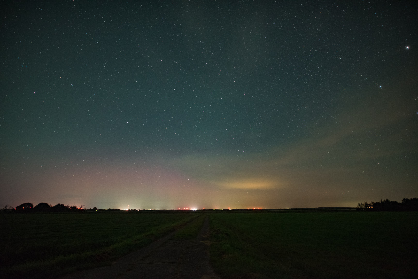 Das schwache Polarlicht wurde noch von einer erheblichen Menge grünem Airglow übertüncht und war auch deswegen nicht sonderlich kontrastreich.