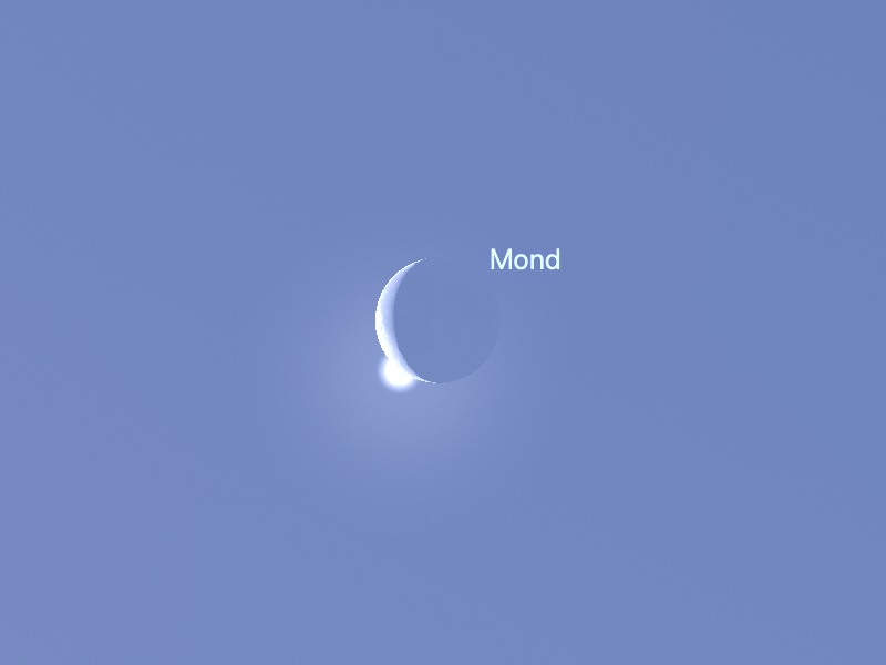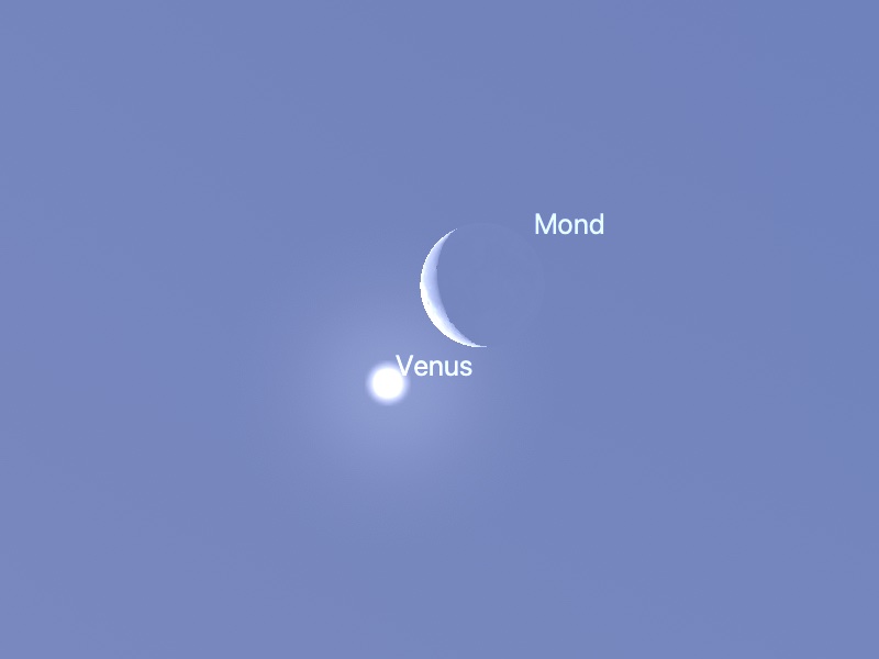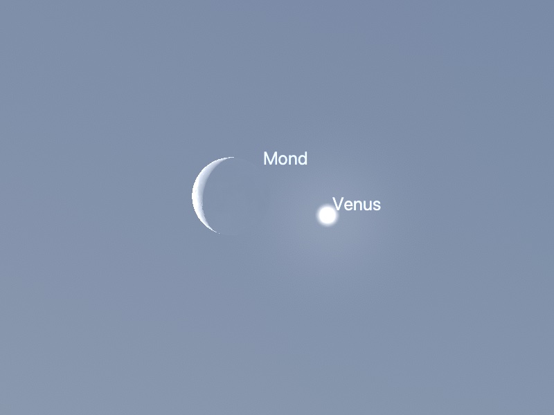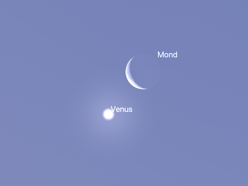 Und so wandert der Mond an der Venus vorbei (nach stellarium, Ort: Heidelberg)