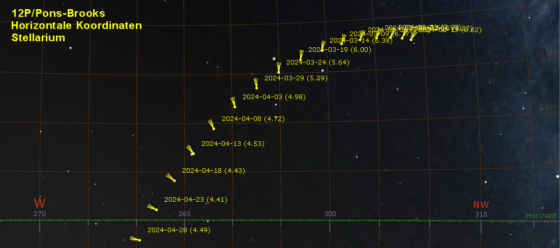 So langsam wird Komet 12P/Pons-Brooks am Abendhimmel mit relativ einfachen Hilfsmitteln erkennbar. Treffen die Prognosen zu, sollte er in den kommenden Wochen noch deutlich heller werden?