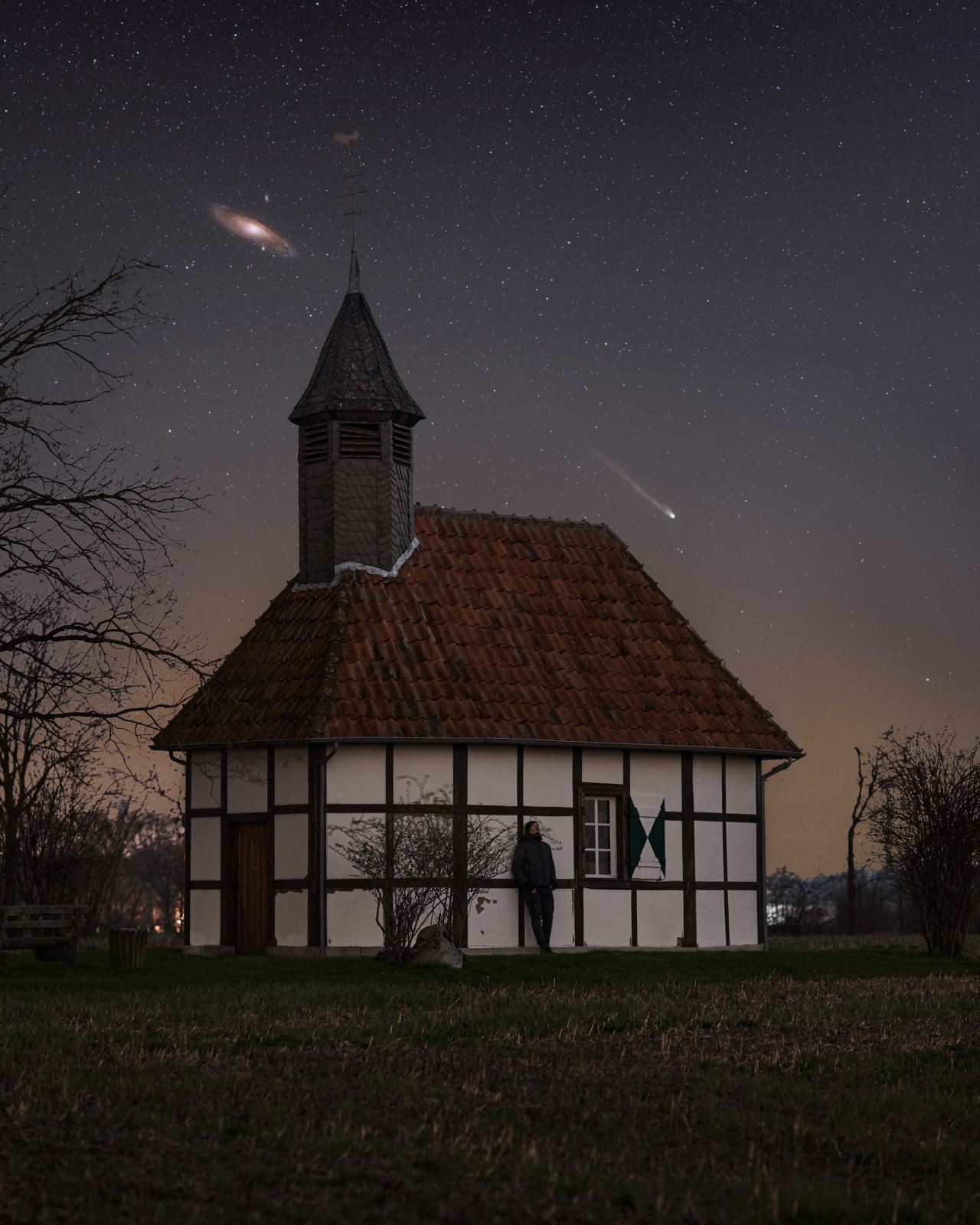 Am 09.03. hatte ich das Glück, Pons Brooks mit Andromeda zu erwischen, nachdem er kurz unter dem Horizont verschwand und in den frühen Morgenstunden wieder auftauchte. Ein ganz herrlicher Abend, erstes Mal galaktisches Zentrum und Rho Ophiuchi in diesem Jahr. Und dann noch das. Den Shot habe ich lange geplant, bei Instagram habe ich auch ein RAW angehangen + EXIF Daten, da man sonst eventuell schnell glaubt, es sei einfach nur mit Photoshop zusammengebastelt.