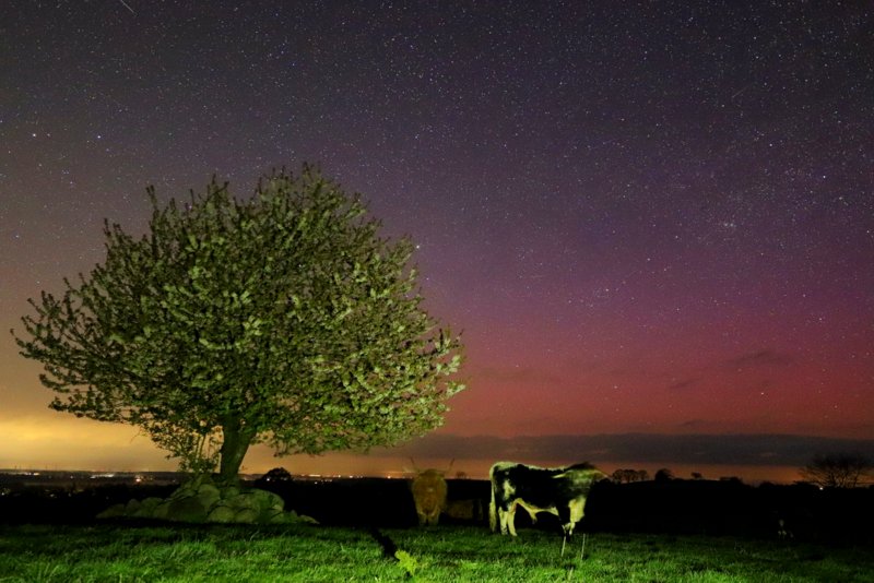 Auch an meinen Beobachtungspunkt in Imsum bei Bremerhaven lies sich fotografisch Polarlicht ausmachen.