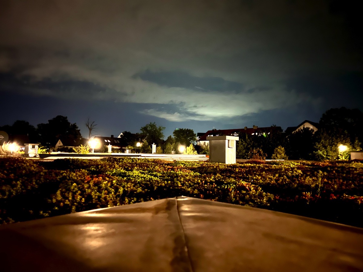 Für die Bilder vom 12./13.8. bin ich über die Leiter zum Dach und habe das iPhone auf dem Blech aufgesetzt. Die Qualität der Bilder wäre sicher besser geworden, wenn ich das Stativ geholt hätte.