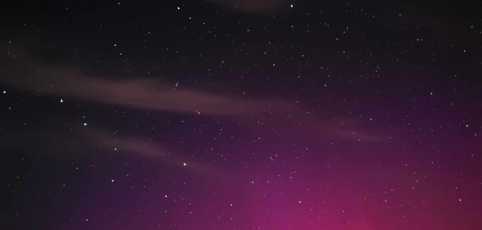 Auf meiner Nordcam schwaches fotografisches Polarlicht: rotes Glimmen und schwacher grüner Bogen.
