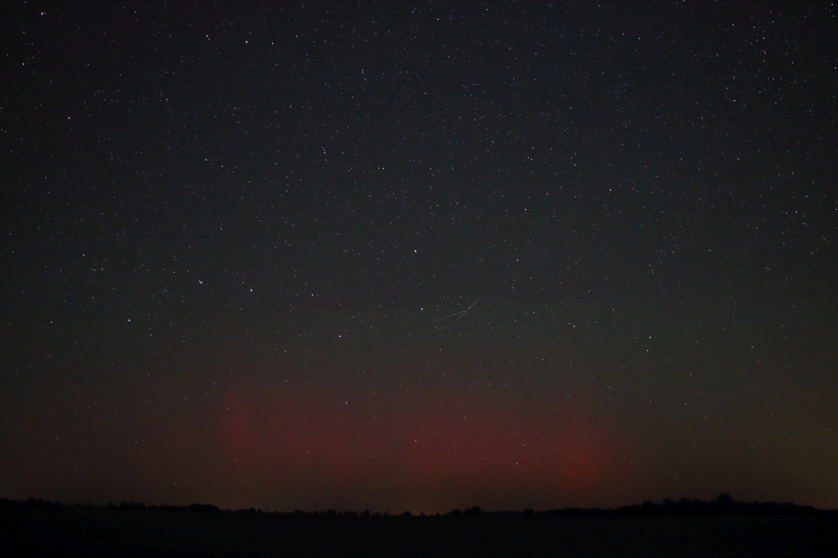 Da es zu diesem "Event" (noch) keine Meldung gibt, lade ich hier für's Archiv auch mal wieder etwas hoch. Die (Folge)Aufnahmen entstanden während einer fußläufigen Exkursion in ein für mich weitgehend unbekanntes, aber landschaftlich zweifelsohne ausgesprochen reizvolles Gebiet. Die Kamera lief eigentlich nur zu Testzwecken. Ein Kontrollblick förderte dann allerdings Überraschendes zutage. Angesichts der geringen Aktivität und einer von Michaels Tool selbst für 53.5N prognostizierten Wahrscheinlichkeit von nicht viel mehr als 5% zu diesem Zeitpunkt war das am Ende doch eine erstaunlich klare Angelegenheit bei Bedingungen, die sich horizontnah alles andere als einladend erwiesen. Über der Melange aus Dunst und Staub zeigte sich bei ausgesprochen trockener Luft allerdings auch ein sehr klarer Himmel.