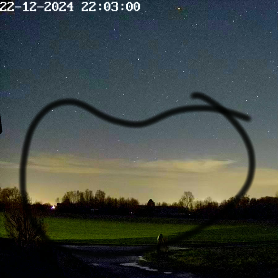 An meiner Nord-Webcam kurzes fotografisches Polarlicht (schwacher roter Beamer und Glimmen) 23:01 bis ca. 23:07 MEZ