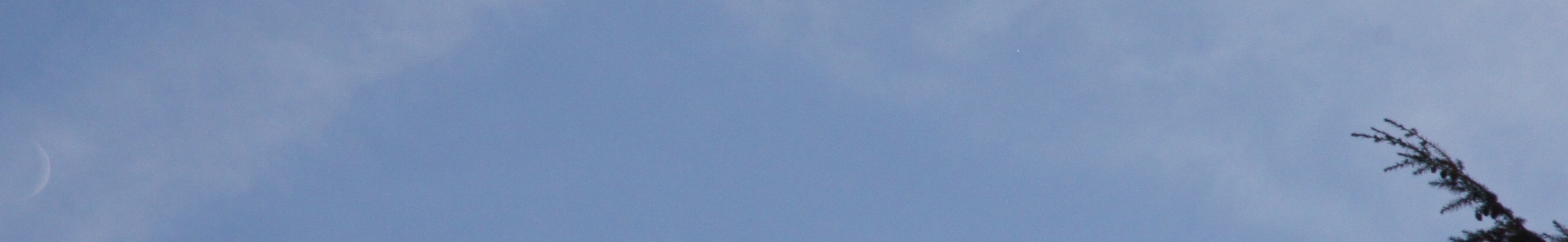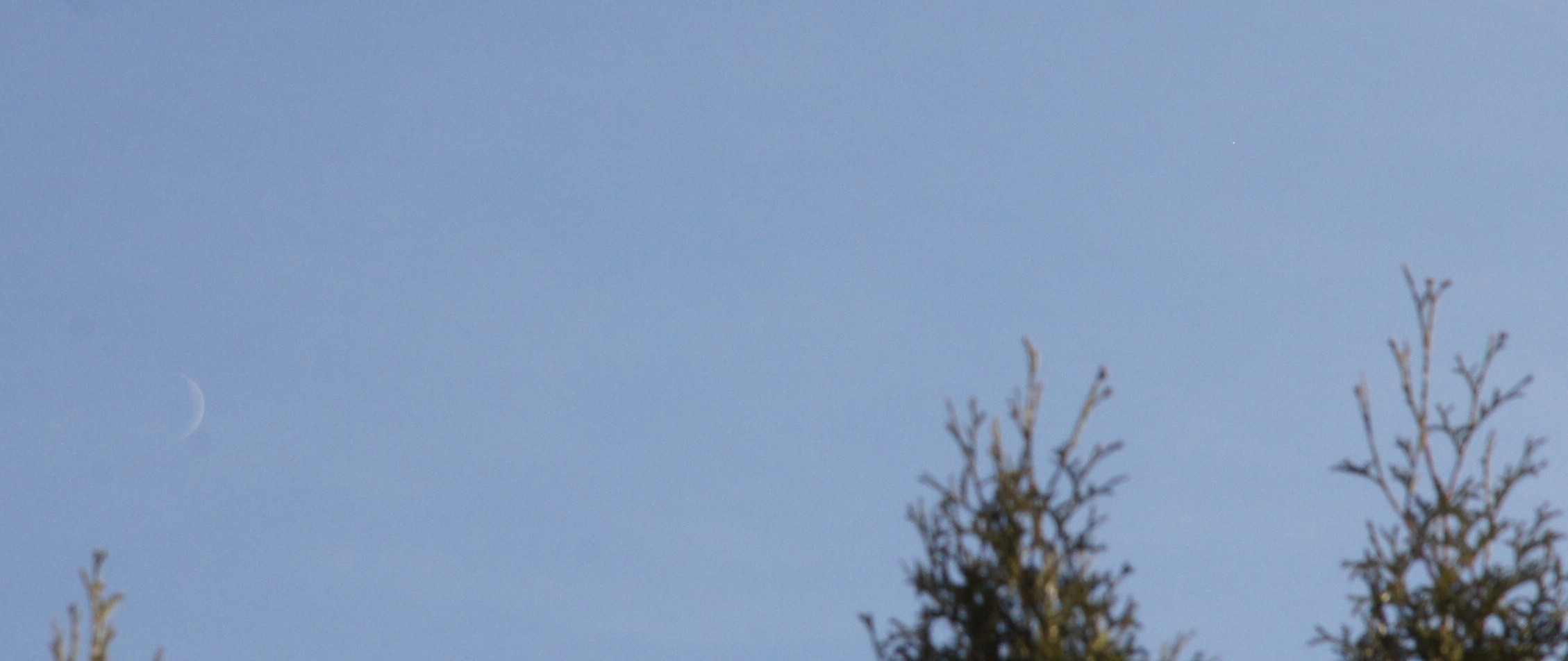 Gestern gelang mir die Sichtung bei einem Spaziergang um etwa 15:30 MEZ, der Mond war da natürlich eine schöne Aufsuchhilfe. Das angefügte Bild habe ich um 15:45 MEZ aufgenommen. Später zog etwas mehr Cirrus auf, was mir die Beobachtung sogar erleichterte, ein gestochen scharfer weißer Punkt war immer auf Anhieb zu sehen, er hob sich in den Schleierwolken deutlichst ab.