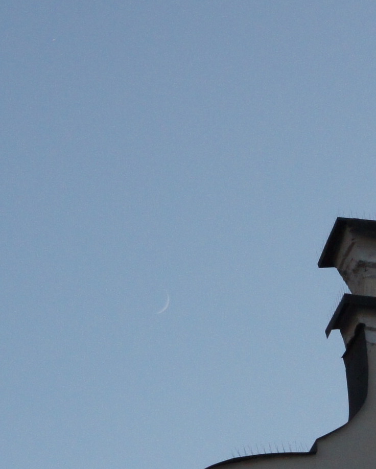 heute tagsüber in Speyer gewesen – es war eine Freude, jederzeit das Paar Mond–Venus am Taghimmel sofort zu finden. Auch Venus bereitete keinerlei Probleme: sie stand stets unübersehbar links oberhalb des Mondes. Gegelentlich habe ich bei der Suche zunächst nach der Venus Ausschau gehalten, aber nie habe ich sie vor der Mondsichel aufgefunden: Bei diesem Sonnenabstand ist der Mond eine leicht zu sehender "Hinweiser" auf Venus, und in der Konstellation heute war Venus immer sofort aufzufinden bzw. zu sehen. Leichter ist Venus am Tageshimmel nicht aufzufinden...