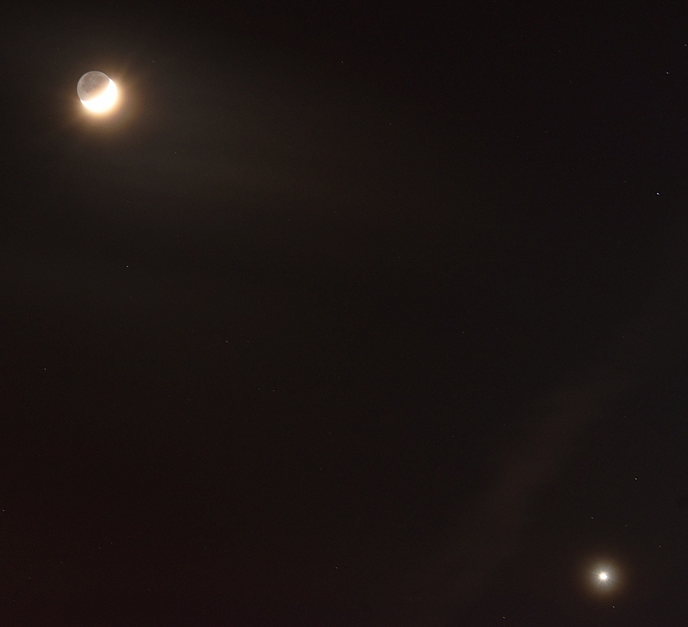 Mondsichel bei Venus und mit Mond unbeleuchteter Teil.