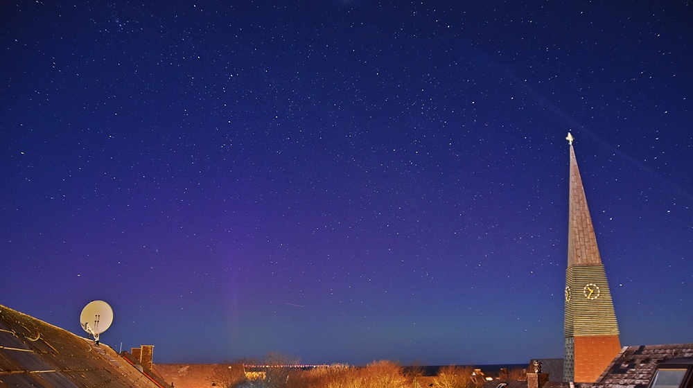 nicht viel, aber immerhin etwas. Überwiegend war es rot-violettes Glimmen. Im Ansatz sind aber auch einzelne Strahlen erkennbar. Auf dem Kameradisplay sah das teilweise etwas anders aus, wo die Strahlen durchaus erkennbar waren. Anbei zwei Fotos: