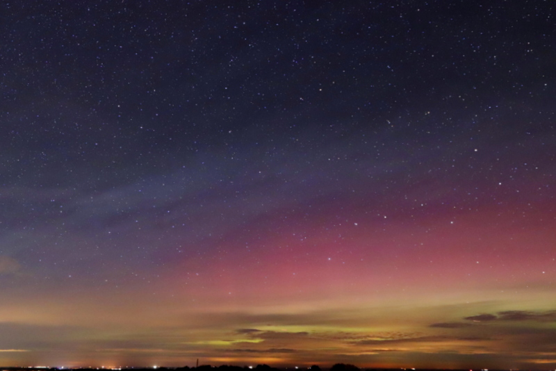 Von meinem erhöhten Standort in Hamburg Eidelstedt konnte ich su um 21:15 Uhr schwaches Polarlicht sehen.