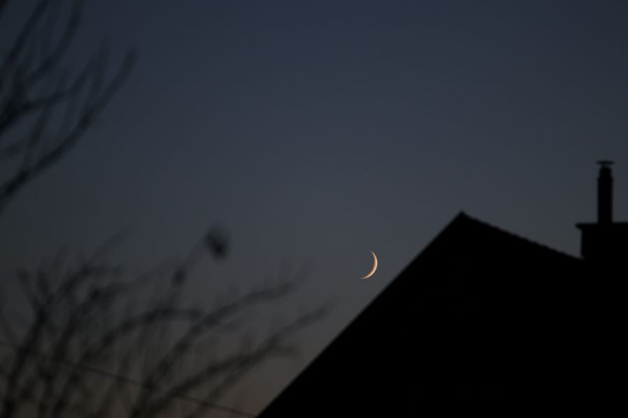 eine drei Abende alte Mondsichel über dem Wiener Becken.