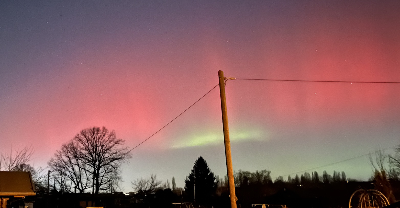 Von gestern um 21:55 Uhr. Das grün war nur ganz kurz sichtbar. Grob Richtung Norden fotografiert.