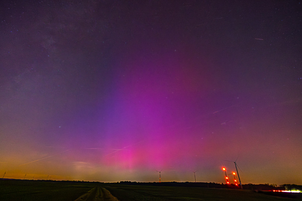 Und hier eine Übersicht des Himmels mit voll aufgedrehter Sättigung, damit man den SAR-Bogen erkennt: