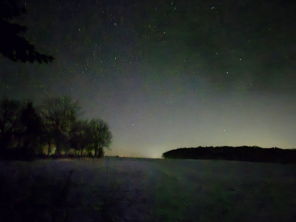 Auch in Büdelsdorf fotografisches Polarlicht nachweisbar: schwaches rotes Glimmen + schwache rote Beamer gegen 22:30 MEZ.