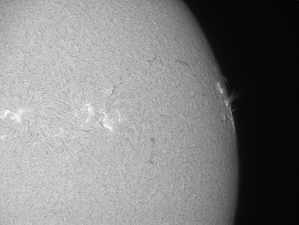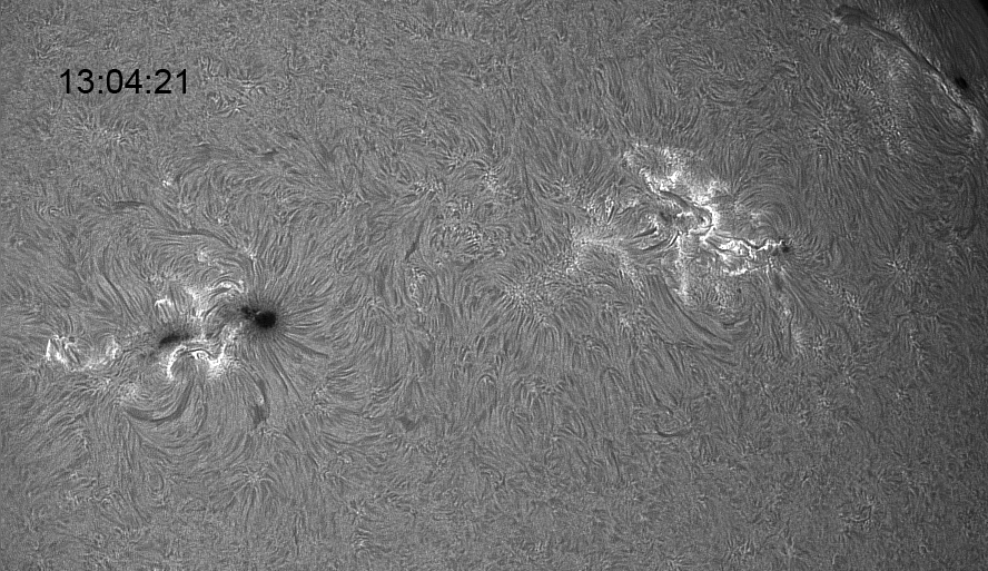 heute hatte ich zwischen Wolkenlücken nochmals eine Gelegenheit, Nr. 63 aufzunehmen. Gerade die Randlage ist eigentlich wurderbar bei Flares. Ich hatte tatsächlich Glück (oder 63 ist einfach so aktiv, dass man kein Glück braucht) und konnte ab 13.33 bzw.14.08 MESZ zwei Ausbrüche live verfolgen. Leider blieben die Wolkenlücken ihrem Charakter treu und verdeckten immer wieder die Sicht.