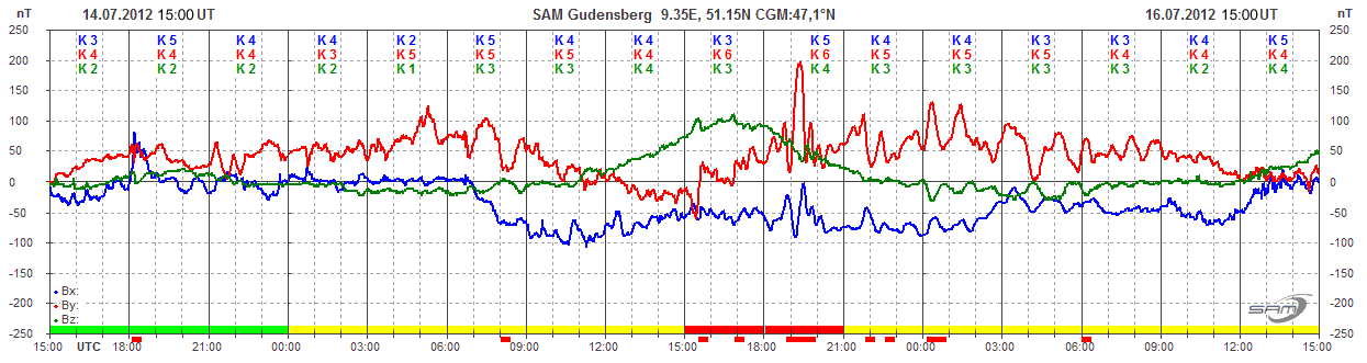Dazu eine zusammengesetzte Grafik des SAM vom 14.7. 15UT bis 16.07. 15 UT: