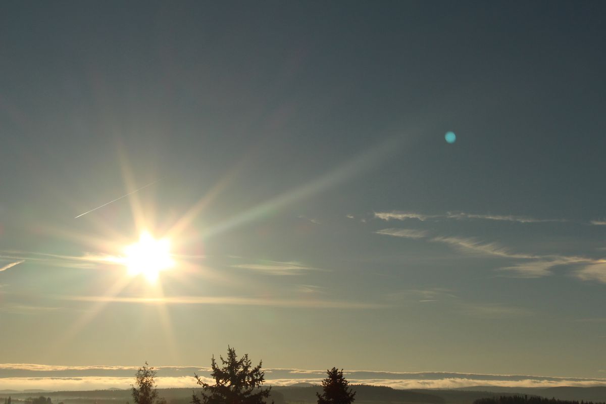 Purpurlicht nach Sonnenuntergang am 06.12.2015 Sonnenuntergang am 8.12.2015 seltsame "Henkel-"Wolke am 23.12.2015 (flog erst frei herum, bis sie andockte; Knipser nicht rechtzeitig rauskramen können) Böhmischer Nebel über dem Osterzgebirge, Bildmitte kleine Nebensonne am 24.12.2015 Altocumulusdecke am 25.12.2015 (14 mm Weitwinkel) "UFO-Invasion" am 26.12.2015 vor Sonnenaufgang