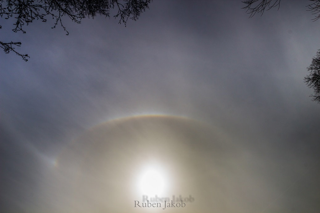 Auch hier hier über Sachsen gab es ein tolles Halophänomen zu sehen. Da ich bis heute nicht exakt den Infralateralbogen vom Supralateralbogen unterscheiden kann, fehlt mir die Identifikation. Sicher waren der PB, der OBB, der ZZB, der 22°-Ring, beide Nebensonnen…
