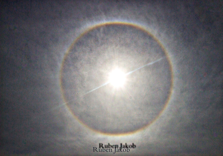 hier in Dessau sah es heut ab 8.40Uhr ganz ähnlich aus, 22°-Ring mit Umschreibung und Nebensonnen welche zum Abend hin sehr hell wurden.