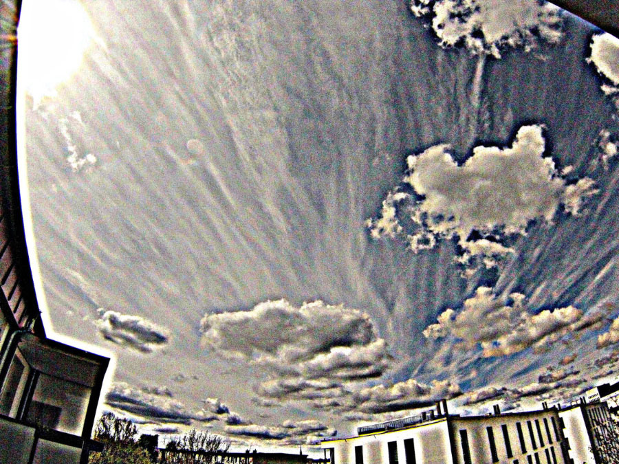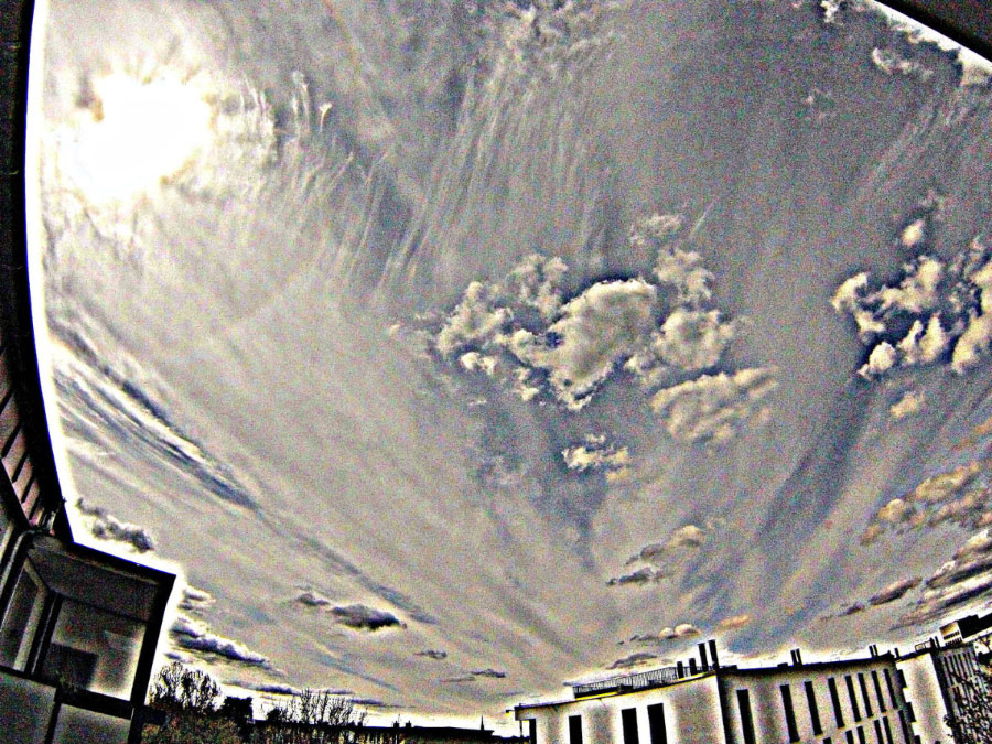 Gegen 12:00 MESZ vernahm ich auf meiner Webcam einen 22°-Ring samt Nebensonne und Horizontalkreis (HZK). Das veranlasste mich natürlich gleich vom Balkon aus zu beobachten. Und siehe da, ich konnte den HZK danach noch gleich 2x beobachten. Andi Zeiske schrieb mir, er hat noch eine 120° NS beobachten können. Aktuell gibt es immer noch den 22ger zu sehen.