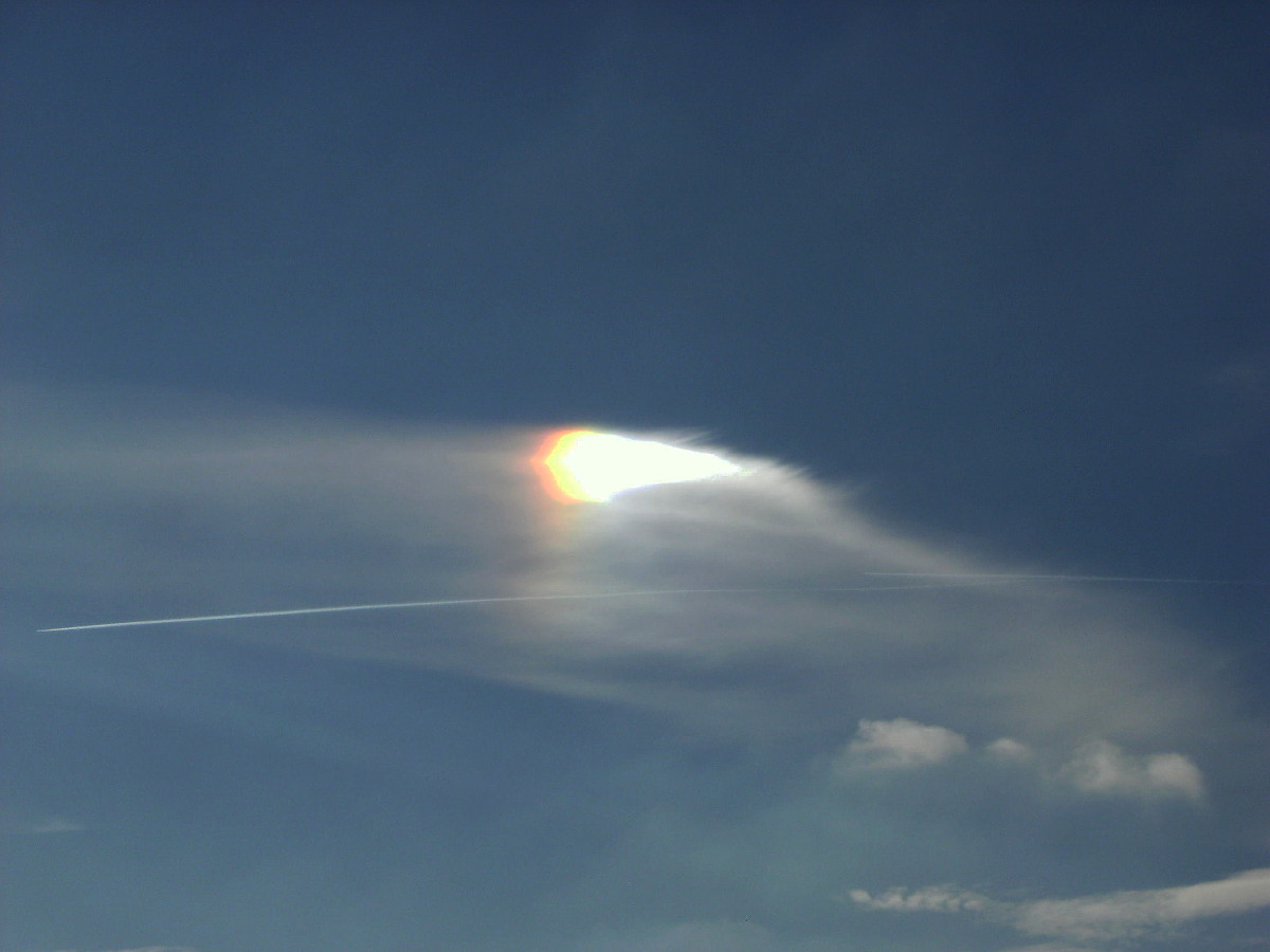 Ich konnte vorhin ein paar sehr schöne Nebensonnen einfangen. Die Rechte war leider eher schwach und auch ganz schnell wieder weg, aber die Linke zeigte sich immer wieder in verschiedenen Kondensstreifen. Zusätzlich gab es noch einen schönen ZZB. Dieser war leider schon weg, als ich meine Kamera zur Hand hatte.