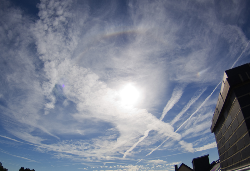 Horizontalkreis mit Aufhellungen und 120°-Nebensonnen (15:53), leider auch mit Staubkorn:
