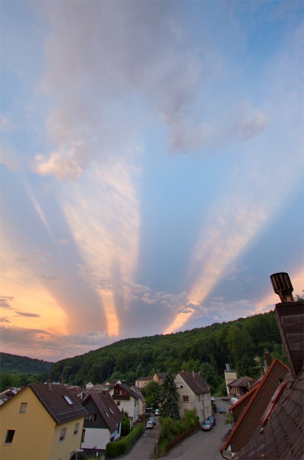 Die Aufnahmen entstanden nahe Sindelfingen - die Verursacher dieser Strahlen, welche quasi über den ganzen Himmel gingen, waren schwache Gewitter bei Karlsruhe.
