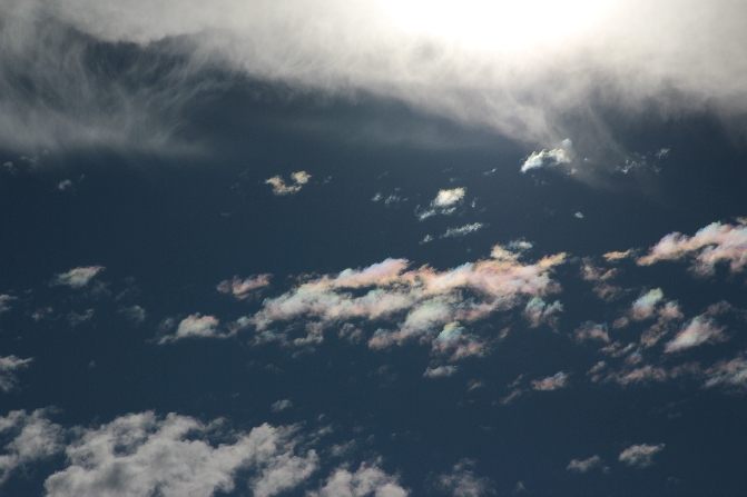 Und dann gab's am 12. noch einen Cirrus spissatus mammatus cbgenitus (Mammatuswolken unterhalb eines "abgerissenen" Eisschirmes eines Cb'). Leider hat mir hier die Kamera einen Streich gespielt, und somit ist nur ein sehr unscharfes Bild entstanden. Ich hab's trotzdem mal als Beleg einstellt. Vielleicht kann man's ja doch erkennen, war live sehr deutlich.