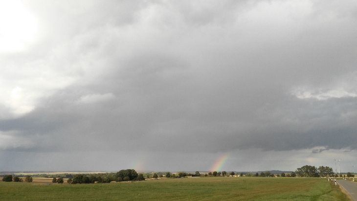 Ein flacher und schwacher Regenbogen von gestern nachmittag (12.09.), kurz nach 15 Uhr MESZ: