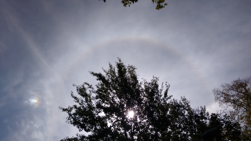 Erst waren ein toller 22er mit linker Nebensonne zu sehen, später auch die rechte Nebensonne (leider nicht als Bild). Wieder etwas später dann ein schöner ZZB und eine rechte 120° Nebensonne.