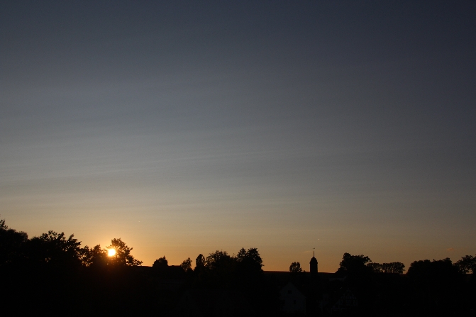 P.S. Jetzt haben sich die Streifen fast aufgelöst. Bis paar Altostrautus-Reste (stimmt das?), schön leuchtend beim Sonnenuntergang, Himmel klar.