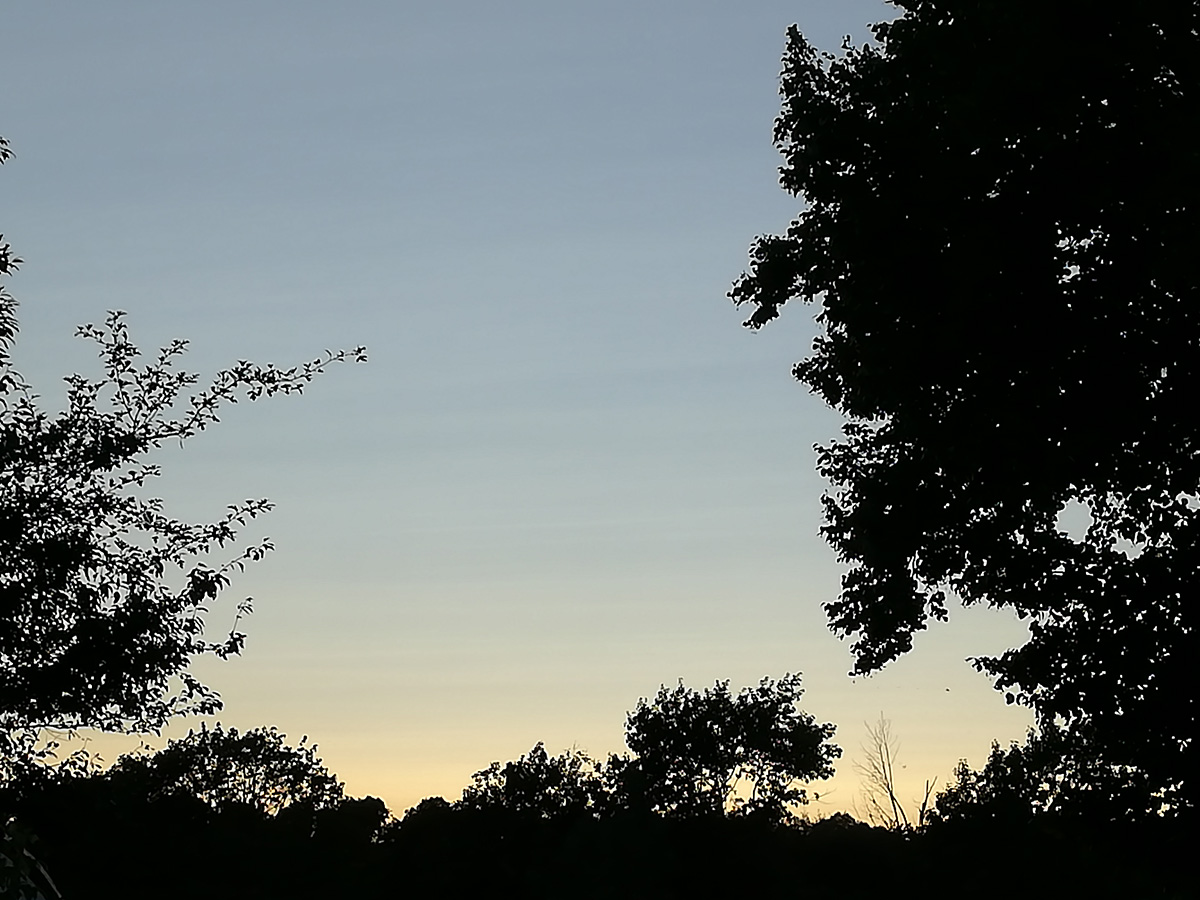 Leider wohne ich im Tal und seh den Horizont nicht. Bis ich das Auto aus der Garage geholt oder auf den Hügel marschiert bin, vergeht eine Viertelstunde.