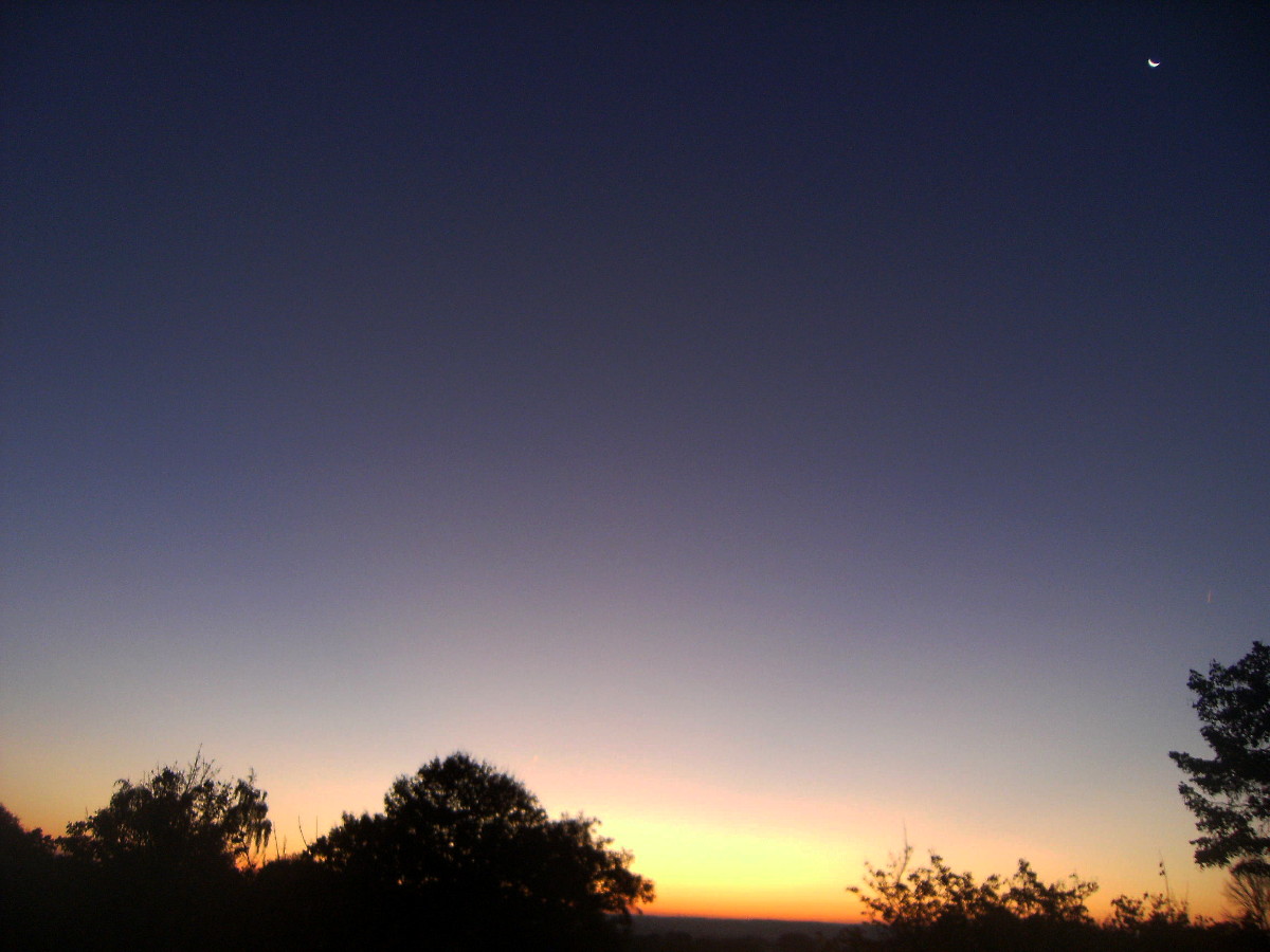 Gestern morgen (16.10.) setzte die Dämmerung sehr früh ein, das Purpurlicht war intensiv und der Sonnenaufgang am sonst klaren Himmel etwas schlierig. Gestern war zeitweise ein schwacher Ring von Bishop zu sehen, aber wegen akutem Schlafmangel hatte ich keine Lust, Bilder zu machen.