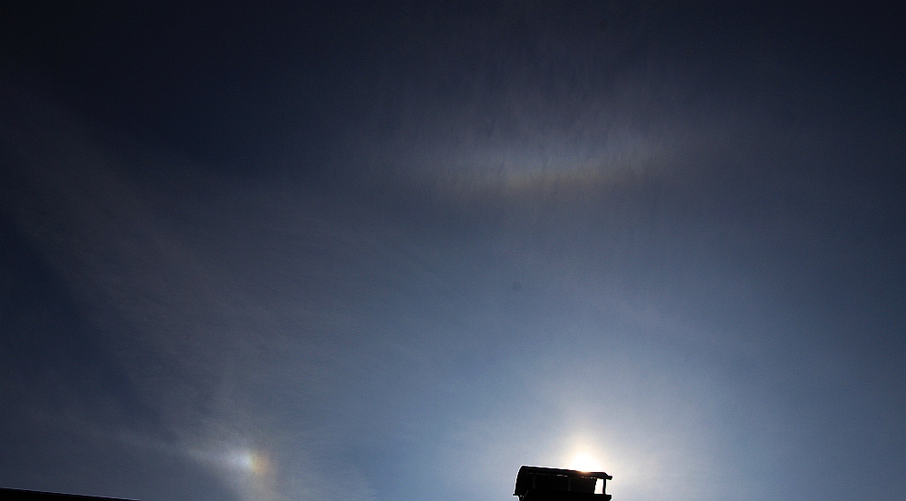 - lInke und rechte Nebensonne mit kurzen Unterbrechungen von 11.30 bis 15.50 Uhr.