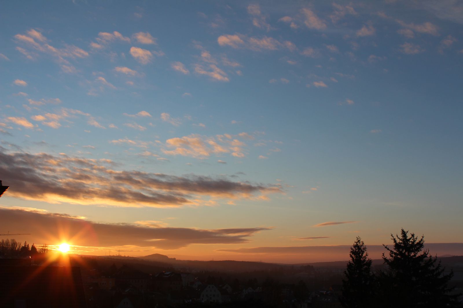 am 11. schöner Sonnenaufgang und wieder mal eine kleine KH-Wolke über dem Osterzgebirge. Leider ist daraus nicht mehr geworden.