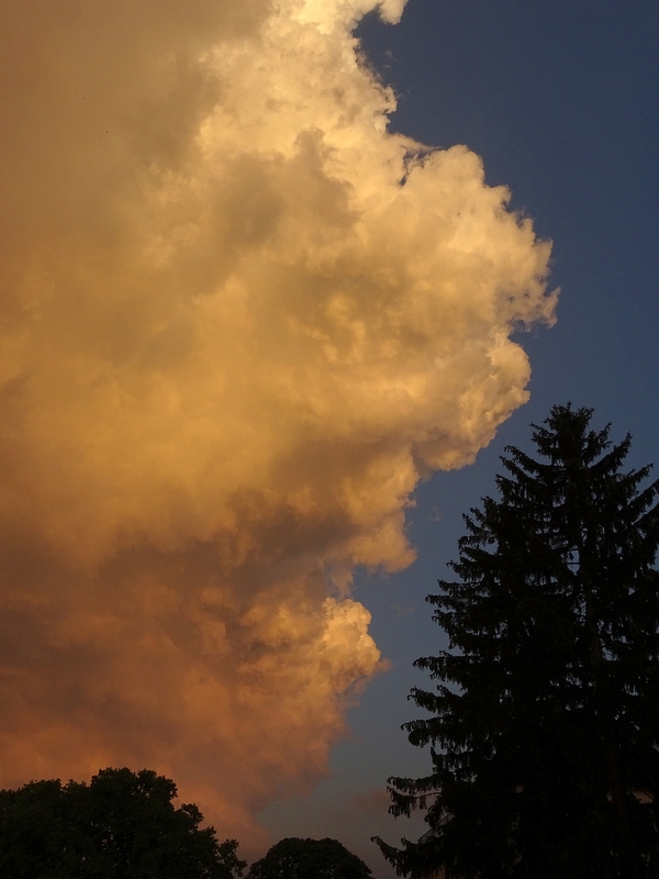 Hier auch ein Wolkenstrahl am Gipfel eines schnell aufschießenden Cumulus (heute Nachmittag), welcher der Phantasie des Betrachters freien Lauf lässt:
