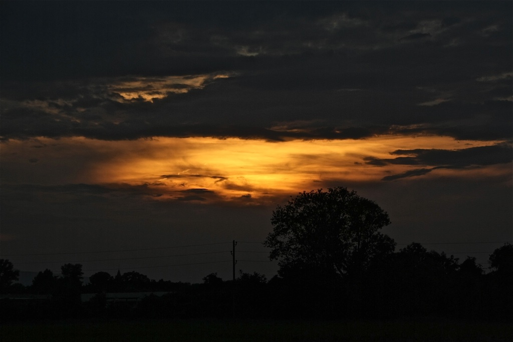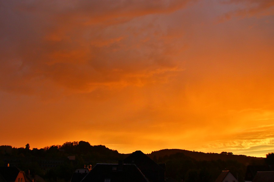 wieder intensiver Sonnenuntergang. Am späten Nachmittag zeigte sich im Westen ein imposanter Cb mit mamatus, er grollte ein bissel herum und brachte immerhin 1mm Niederschlag als Tropfen auf dem heissen Stein.
