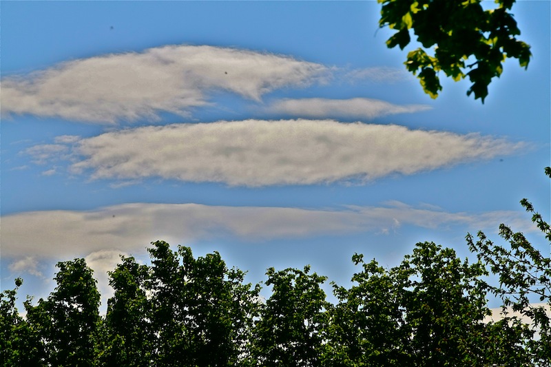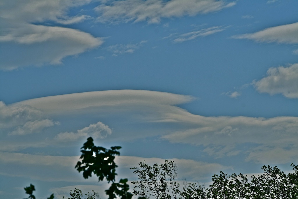 Gestern Spätnachmittags brach der Himmel im Westen ein wenig auf und die lenticular geformte mittelhohe Wolken fingen in Sonnennähe an zu irisieren.