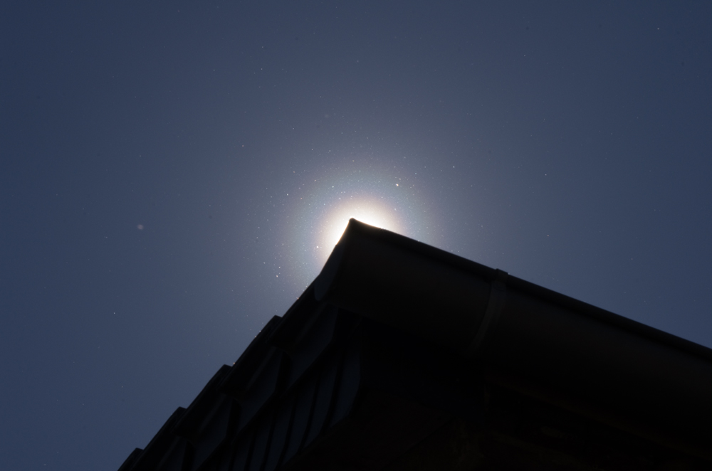 19:53 MESZ - Pollenkorona vor Wolke: 19:59 MESZ: Rot minus Grün: Pollenkorona mit Lichtsäule, 20:20: Viele Grüße,