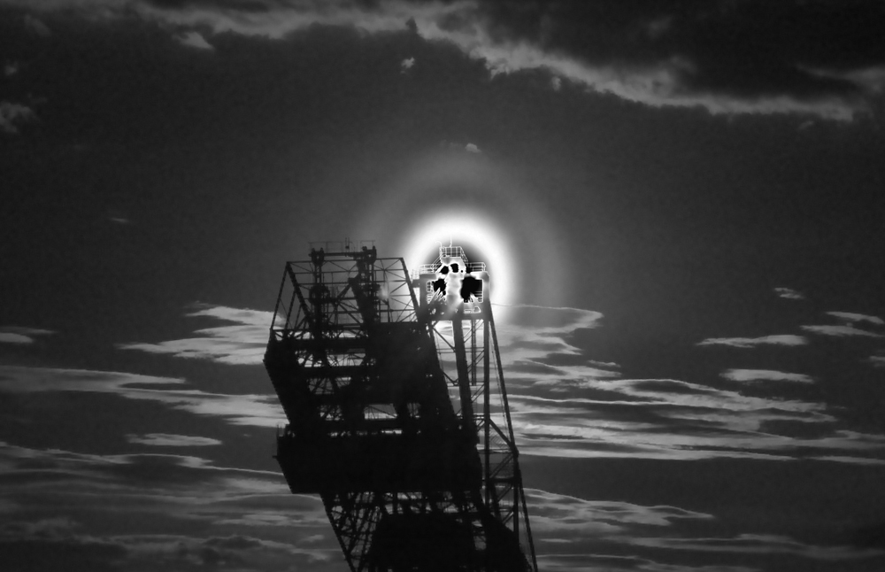 14:24 MESZ, f = 95 mm an Pentax K-5: Rot-Grün: Die Hoffnungen auf eine Verstärkung der Korona zum Sonnenuntergang hin, so wie letztes Jahr, erfüllten sich dann leider nicht. Immerhin blieb sie sichtbar, aber ohne deutliche Lichtknoten und auch in der Rot-Grün-Bearbeitung ohne auffällige äußere Ringe.