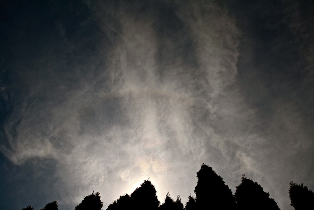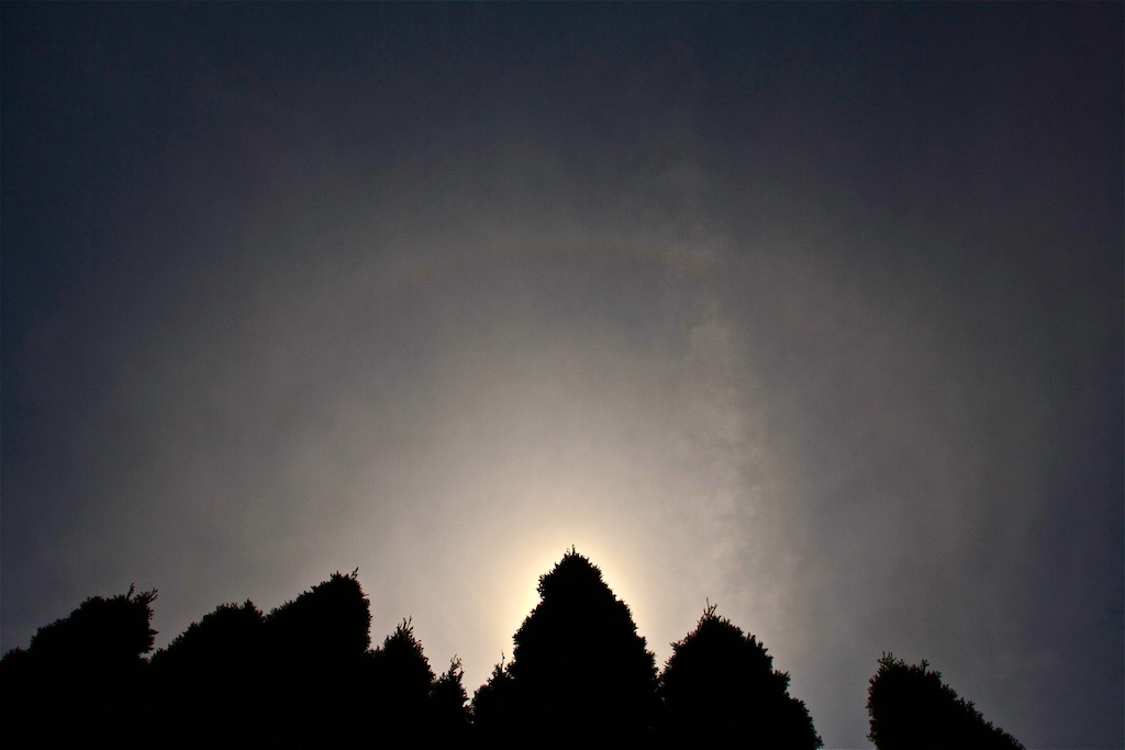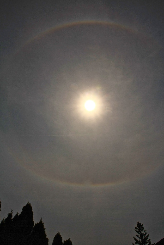 gegen 12h MESZ intensivierte sich das Halo und wuchs zu einem vollkommenen Kreis, der mir etwas oval erschien (?)