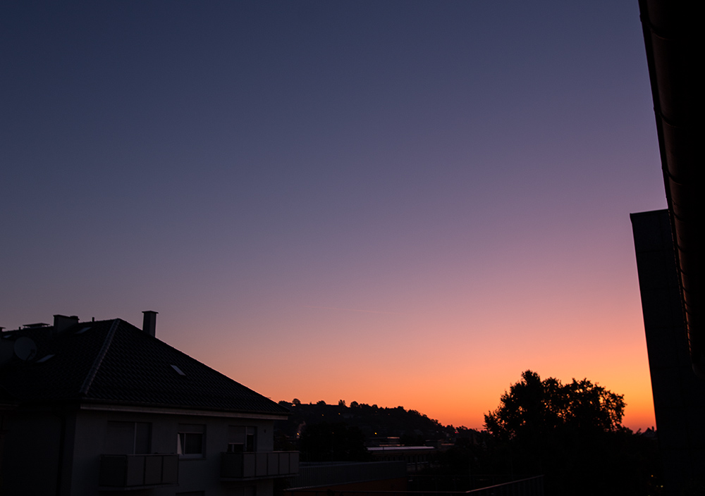 Freitägliche Morgendämmerung über Stuttgart. So einen tollen Überblick wie Heiko habe ich leider nicht.