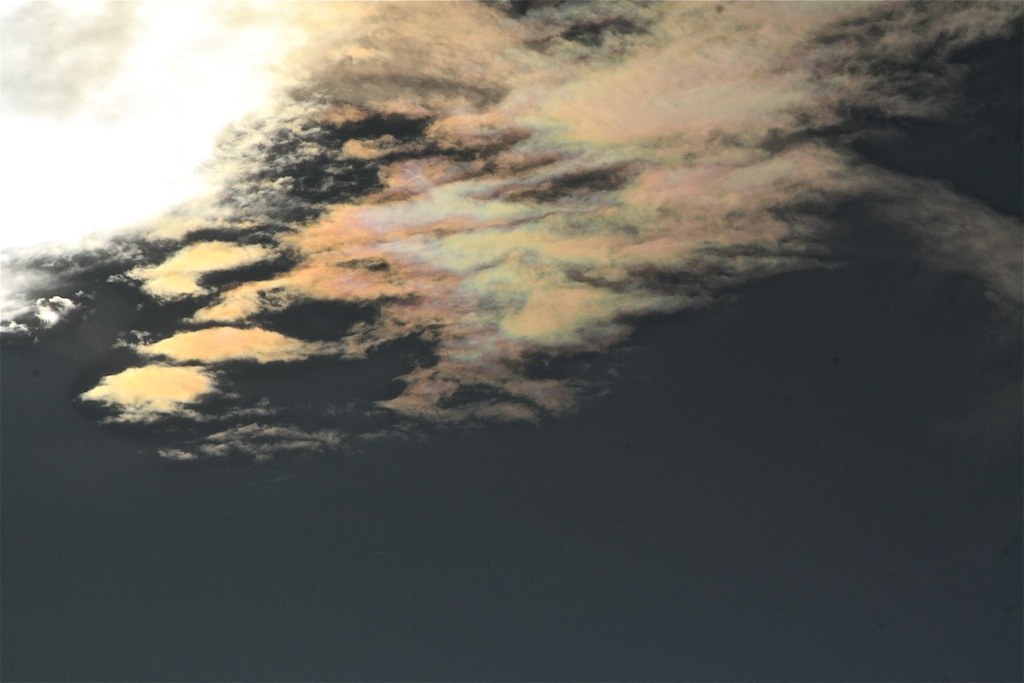 In diesem wunderbaren Altweibersommerhoch zeigten sich gestern Nachmittag irisierende Wolken und eine Teilkorona.