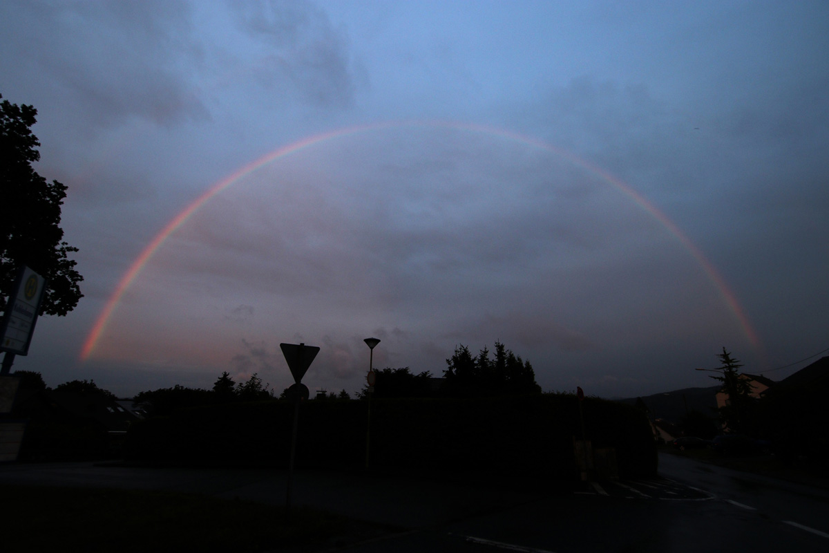 Nach einem Gewitter heute Nachmittag/Abend gab es über fast eine Stunde lang immer wieder Regenbogenfragmente duch Sonnestraheln in Lücken zwischen den Cumuluswolken zu sehen.